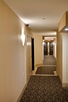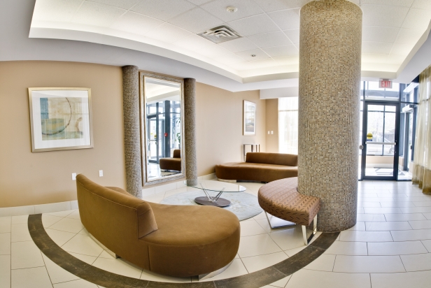 During the initial planning stages of this uptown condo building I was brought in to design all the common areas. With the majority of the purchasers being young couples and first-time buyers, it was important that I keep the decor modern and upbeat. Despite the budget limitations I managed to include a few custom designed pieces that catch the eye in the high traffic spaces of this building.